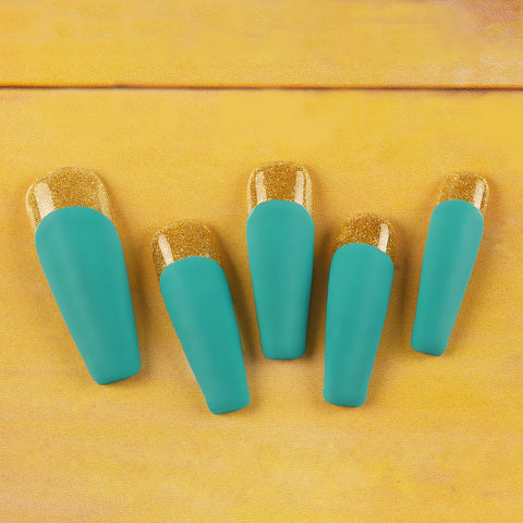 4. Aquamarine Coffin Nails with Sparkle Accents