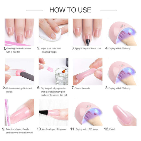 Principle: To cure the nail extension gel, an UV lamp or a LED lamp is necessary. The gel lamp activates the active gene in the resin photoinitiator through ultraviolet A rays, and cures and forms with the double base in the acrylic resin through the photosynthesis reaction.