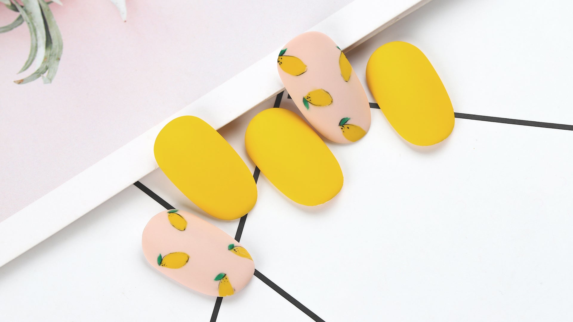 The matte texture also has the effect of reducing the color saturation, so it is particularly suitable for these extremely bright colors. With some fresh fruit paintings, the nail art becomes cuter.