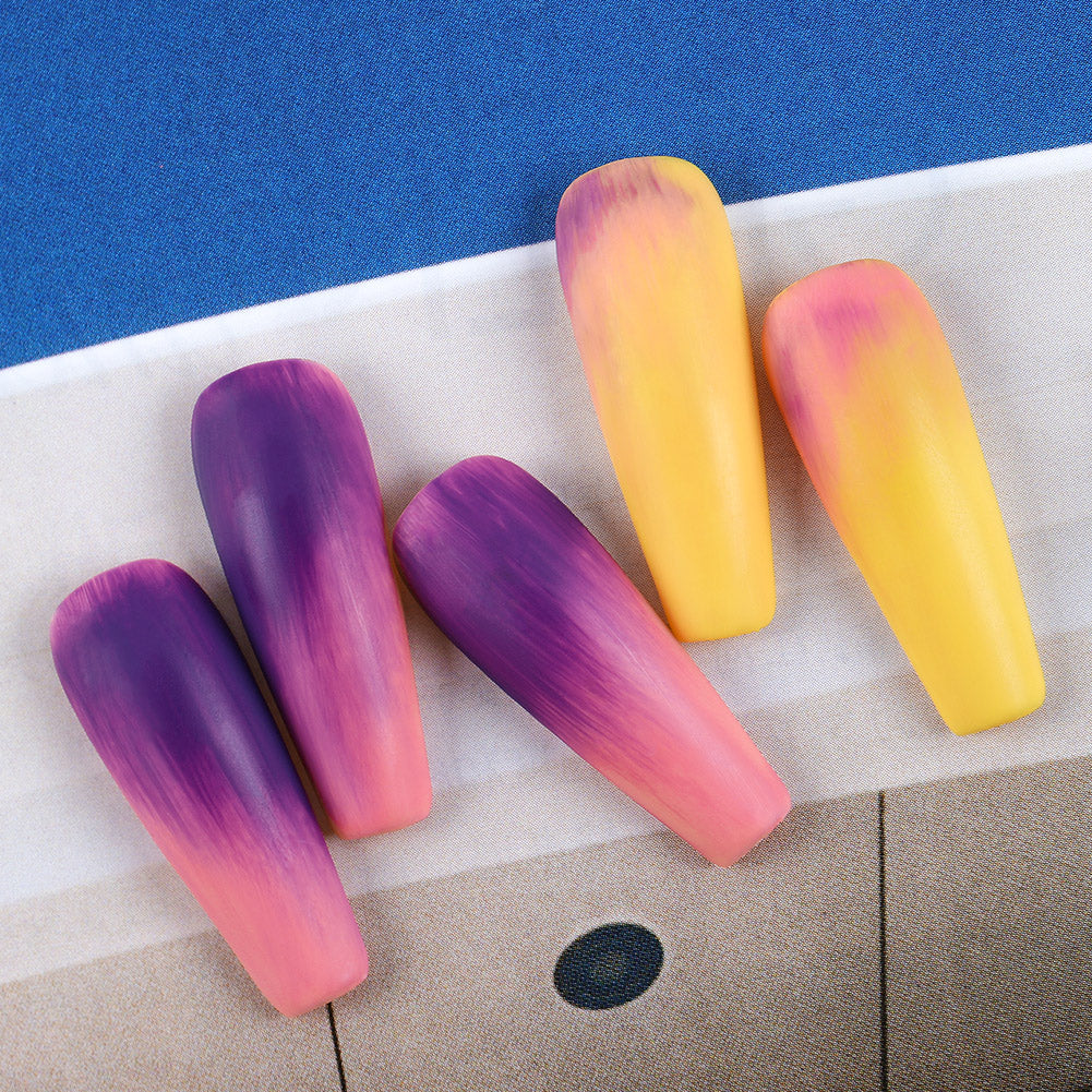 The same bright yellow and pink, gentle purple and pink, the color hits against the matte background to have a more oil painting color feeling, and the visual effect brought by the glossy surface is completely different.