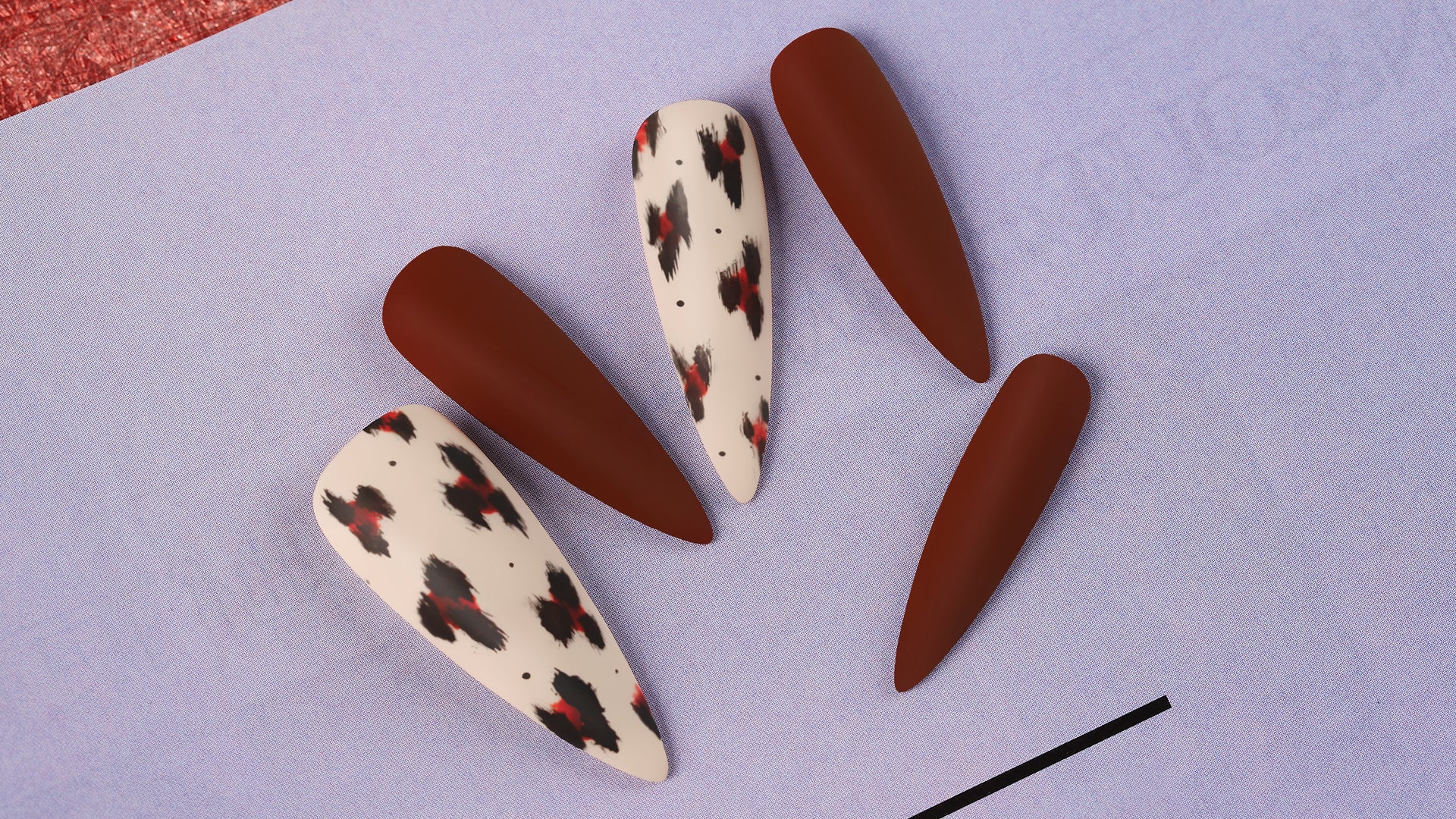The leopard nail art can’t be absent from the nail art world. The matte leopard nail art has a more realistic fur texture, which makes the original leopard pattern an advanced and fashionable look. With a pure color nail art, it is really beautiful and fashionable!
