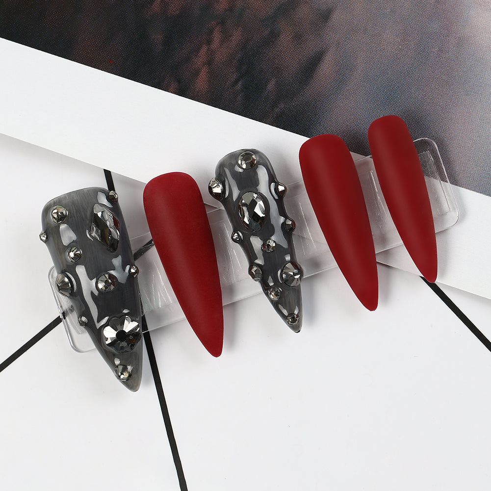 Black matte nail art, with a naked texture diamond nail, is also a style that many girls like. The exquisite nude diamond nail has a charming luster. Its bright look neutralizes the black dark texture. To make your fingertips look more clear and moving.