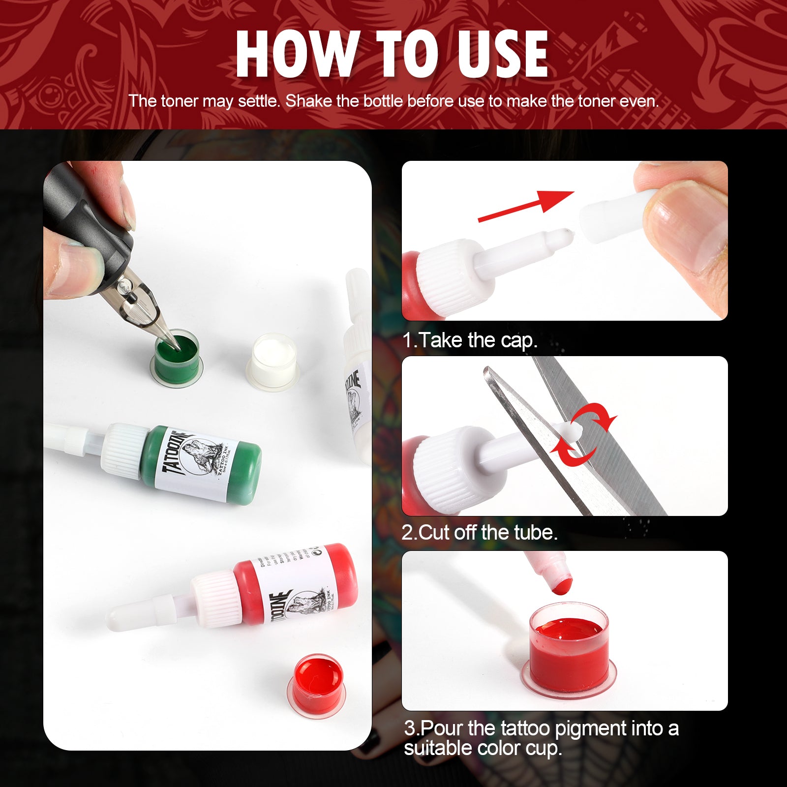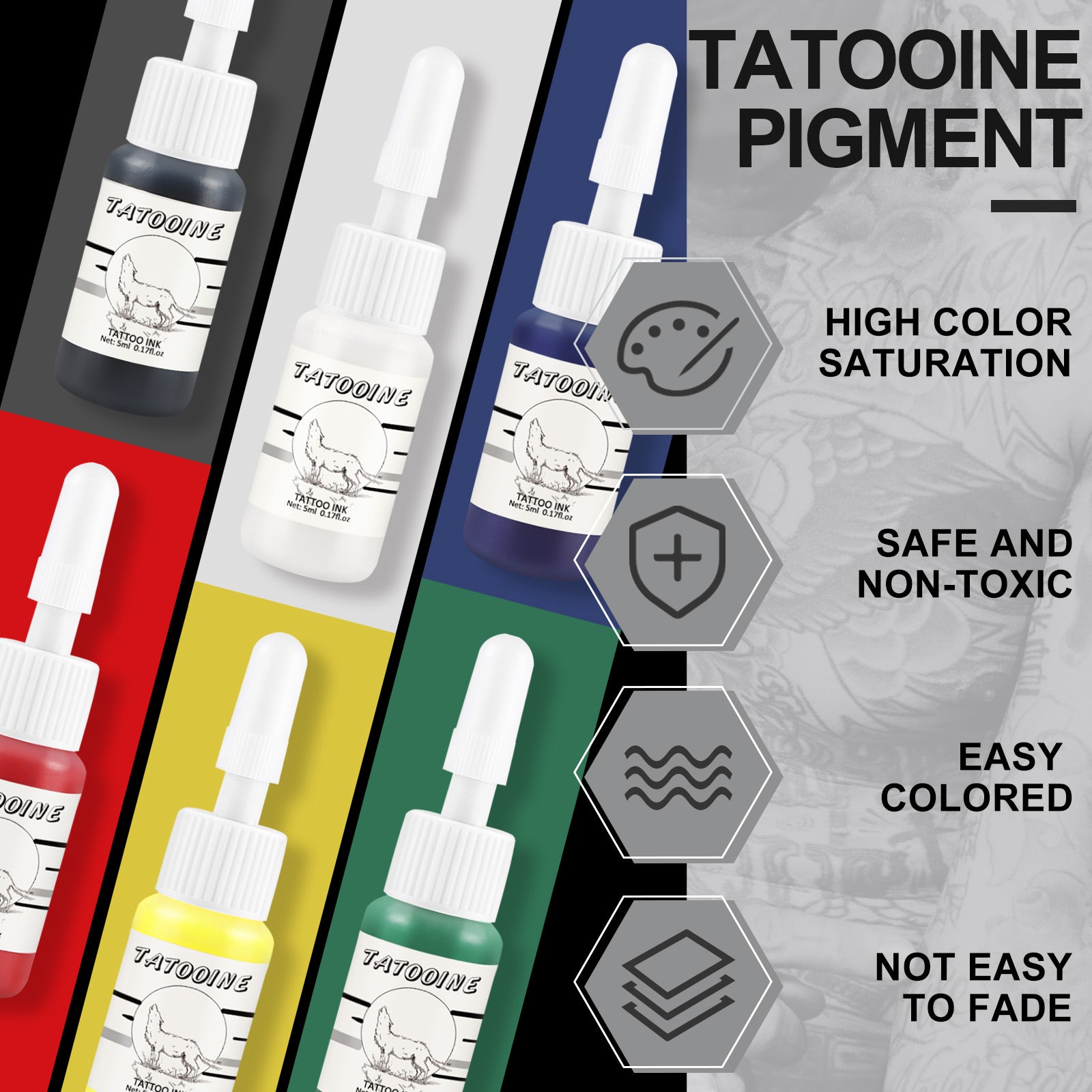 Tatooine 6PCS 5ML Tattoo Ink 4pcs Tattoo Ink Set, Long Lasting Tattoo Painting for Tattoo Design, Tattoo Supply For Body Art